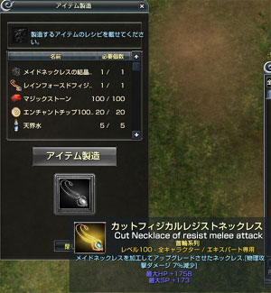 次は、シャッフルでメイドライトニングレジストネックレス(長っ)が出たので結晶体に変えて、カットフィジカル(略)を作ることに。