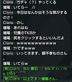 補給イベントのためにメインでINしたら、党員さんから「最近まっちゃん(増尾のこと)レアすぎる。AI○Nに浮気してんじゃねーだろな?」と疑われてしまいました。